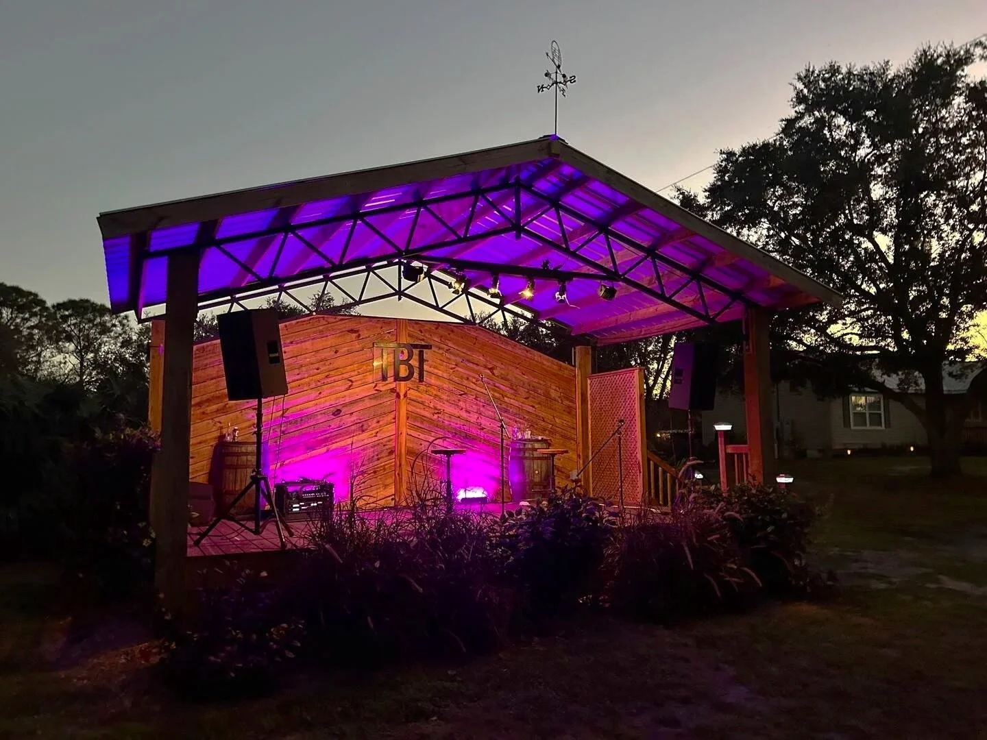 The Dual Stages is a fully outdoor event space, and is located in the center of the property - making it an ideal stopping point in any event flow. The layout of this space features two stages facing one another, with bench seating and room to dance in the middle. Use is to gather guests, host keynote speakers, conduct team building, or throw a battle of the bands.
